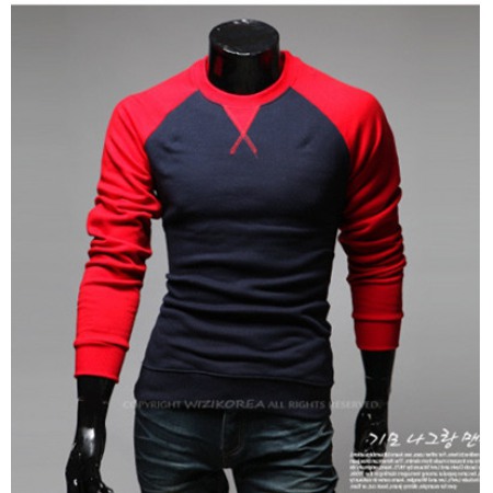 Men's Irregular Stitching Long-Sleeved Plus Size Henry Collar T-Shirt