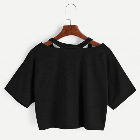 Women's Summer Short Sleeve Knitted Square Collar Top