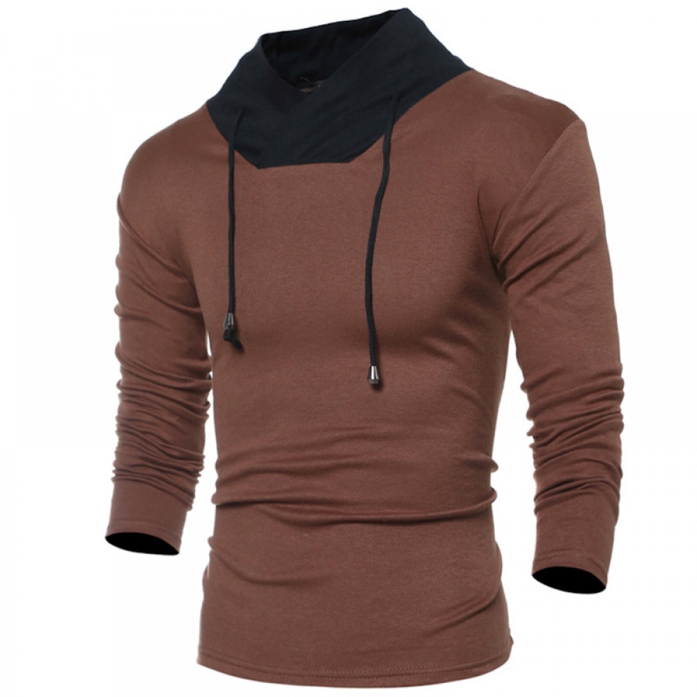 Men's Casual Contrast Color Slim Long-Sleeved T-Shirt Bottoming Shirt