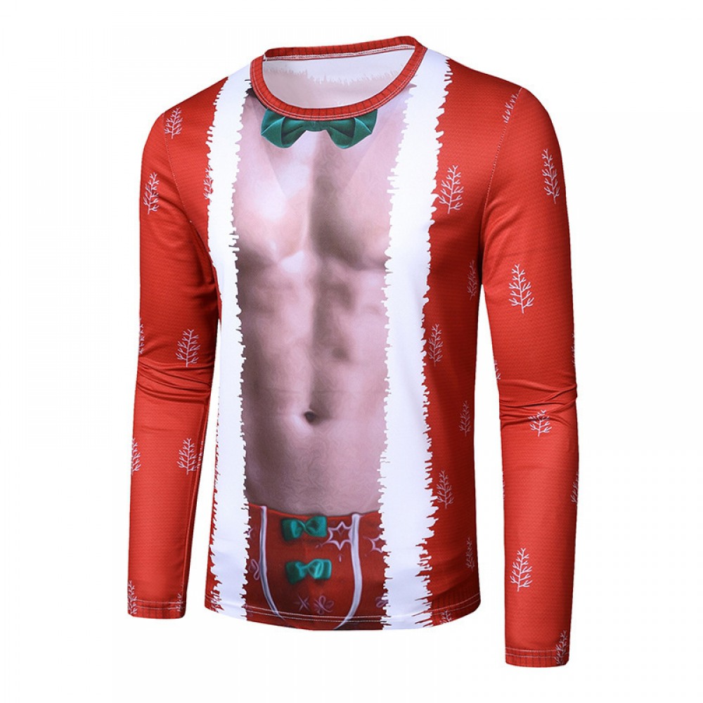 New 3D Personality Printing Fashion Men's Christmas Long-Sleeved T-Shirt