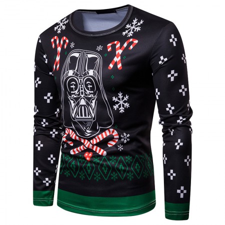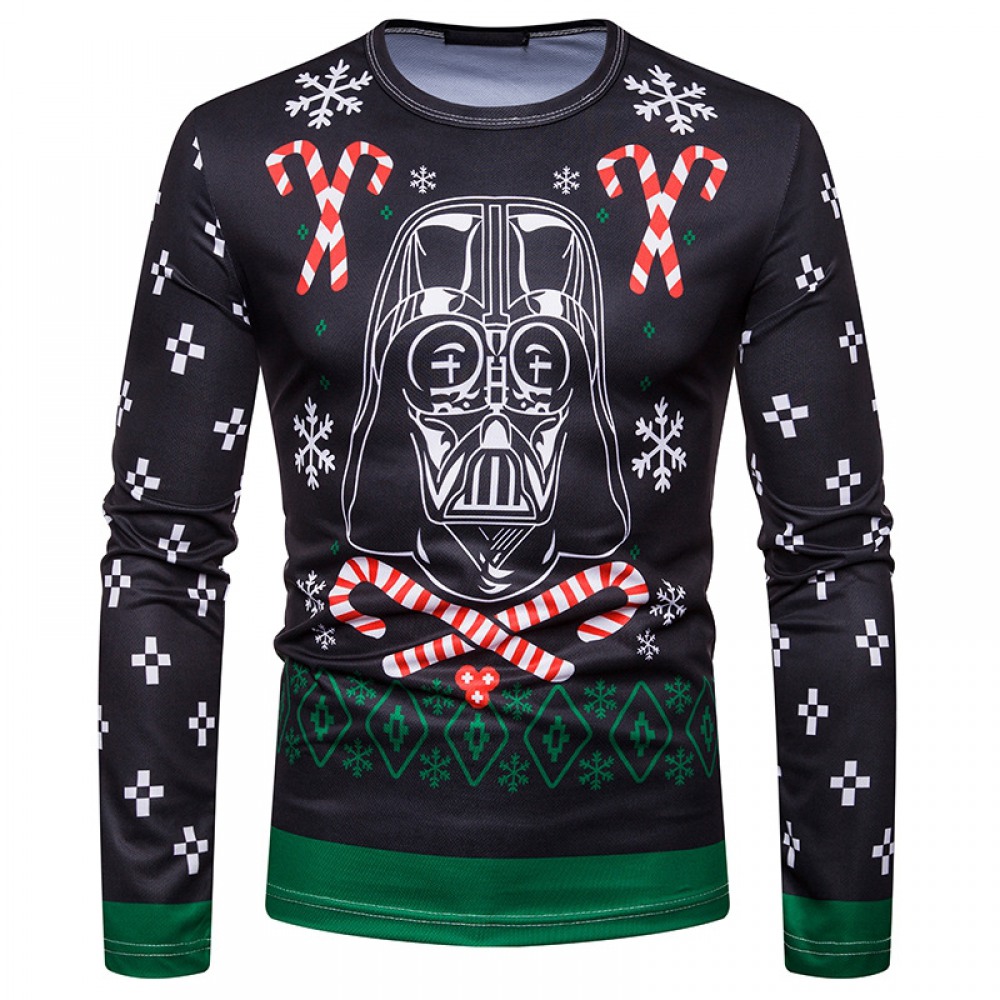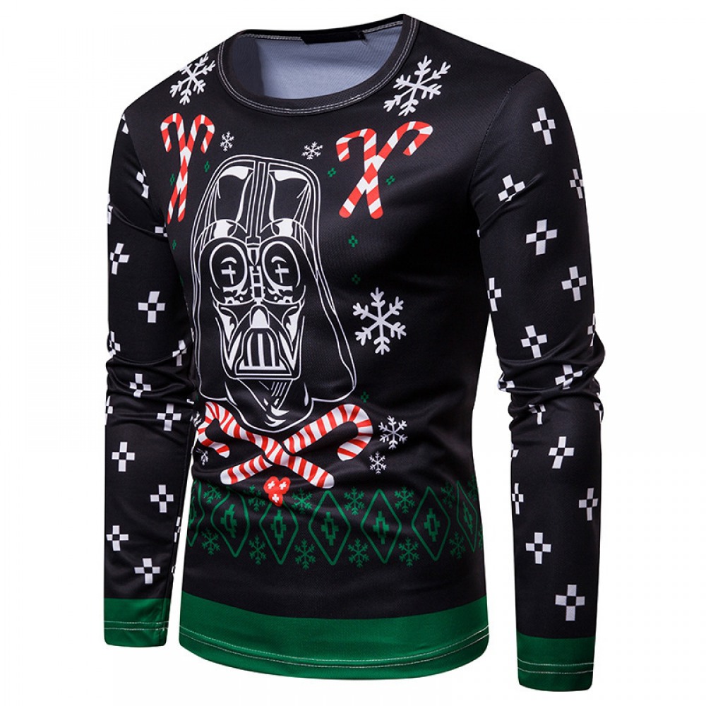 New 3D Personality Printing Fashion Men's Christmas Skull Pattern Long-Sleeved T-Shirt