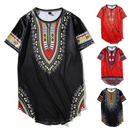 New Men's Flat Tile Large Size Hip-Hop Celebrity Style Long Short Sleeve T-Shirt