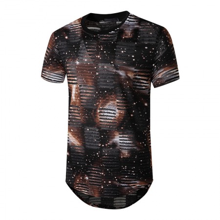 New Men's Plus Size Smiley Hole Short-Sleeved Hipster Hip-Hop T-Shirt