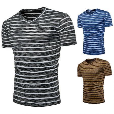 New Men's Large Size Striped Short-Sleeved T-Shirt